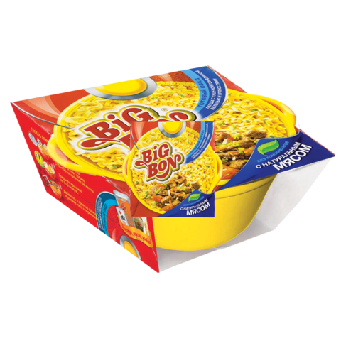 Лапша BIG BON быстрого приготовления с тушеной говядиной и зеленью,110г, тарелка, вилка, ш/к4875 |