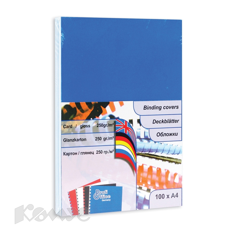 | Обложки для переплета картонные ProfiOffice 100шт./уп. голубые Глянец |