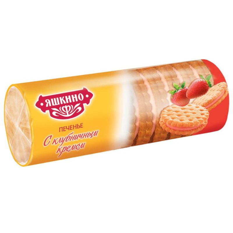 | Печенье затяжное Яшкино с клубничным кремом 182г |