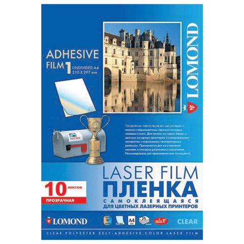 | Пленка LOMOND для ч/б и цветных лазерных принтеров,самоклеящаяся, прозр, 100 мкм, А4, 10 шт. 1703411 |