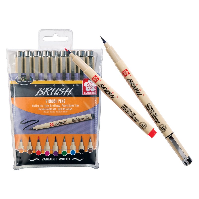 | Ручка капилярная кисть Sakura Pigma brush 9цв POXSDKBR9 |