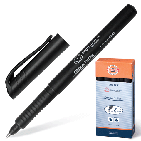 | Ручка роллер KOH-I-NOOR трехгранная, корпус черный, толщ. письма 0,3мм, 7780573801KS, черная |