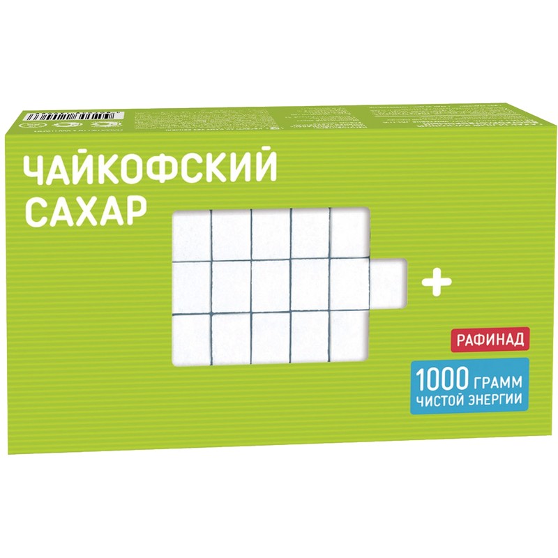 "Сахар-рафинад ""Чайковский"" спрессован небольшими кусочками. Расфасован по 1 кг в картонные коробки.
