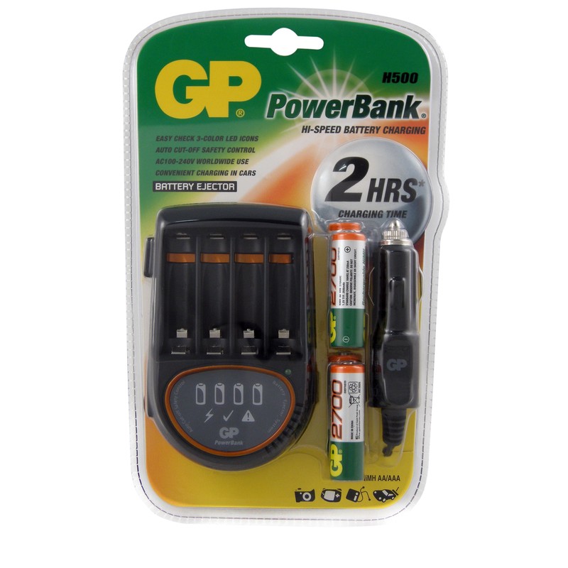 Зарядное устройство GP PB50GS270CA оснащено светодиодным индикатором и поставляется с функциями, такими как защита от избыточного и низкого напряжения или короткого замыкания. Оно также оснащено таймером, который позволяет прекратить зарядку по истечении установленного времени. Позволяет заряжать аккумуляторы АА/ААА за 2 часа. В комплекте