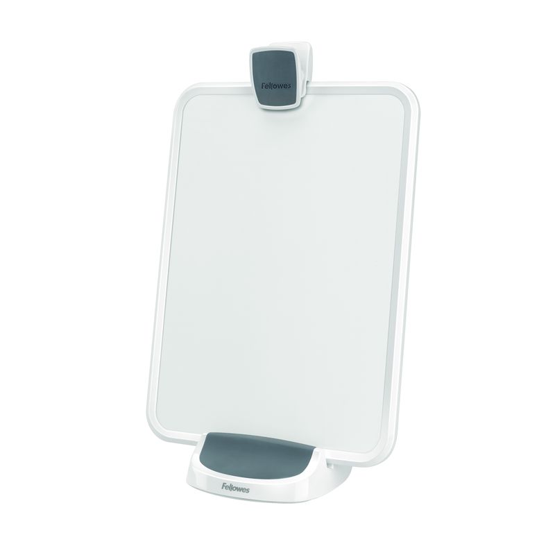 Держатель для бумаг Fellowes I-Spire Document Lift размером 24,1×37 см изготовлен из пластика белого цвета с серыми вставками. Подставка может устанавливаться как вертикально, так и горизонтально. Удерживает до 15 листов стандартной плотности, также позволяет размещать планшетный компьютер. При желании держатель можно использовать в качестве маркерной доски (необходимы соответствующие маркеры).