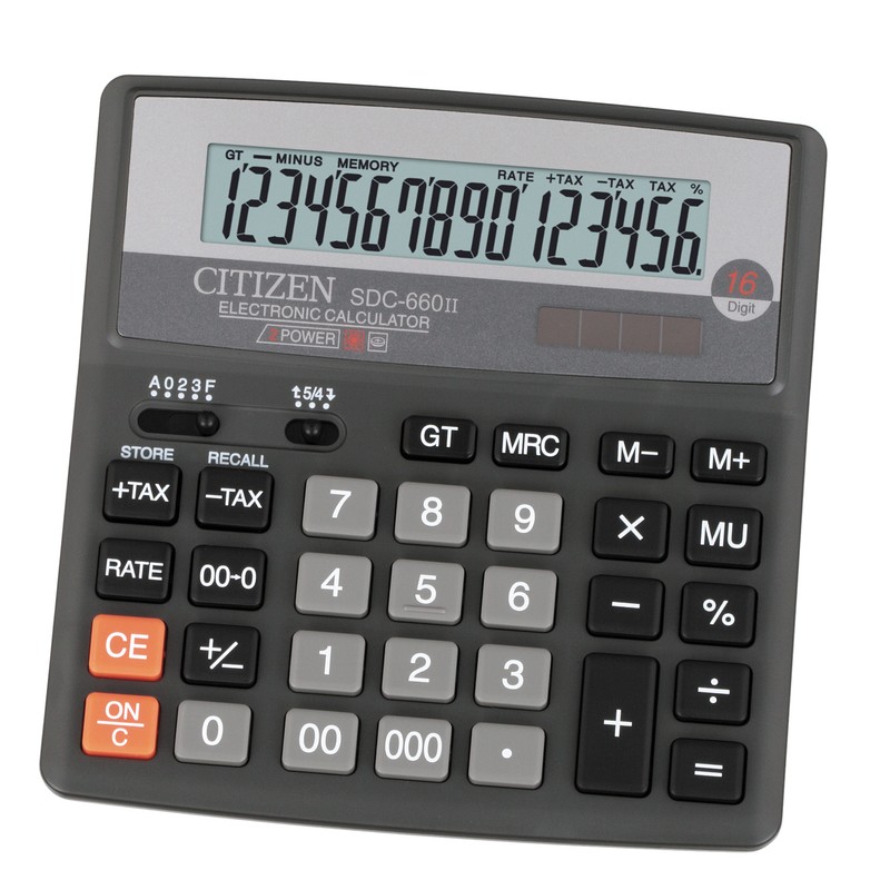 Калькулятор Citizen SDC-640 II в пластиковом корпусе с 16-разрядным ЖК-дисплеем. Имеет оптимальный набор вычислительных функций: основные математические операции, расчет процентов, вычисление налога, функция итогового суммирования, запоминание промежуточных результатов. Удобная клавиатура снабжена кнопкой ввода двойного и тройного нуля. Питание калькулятора автоматически отключается после пяти минут бездействия.