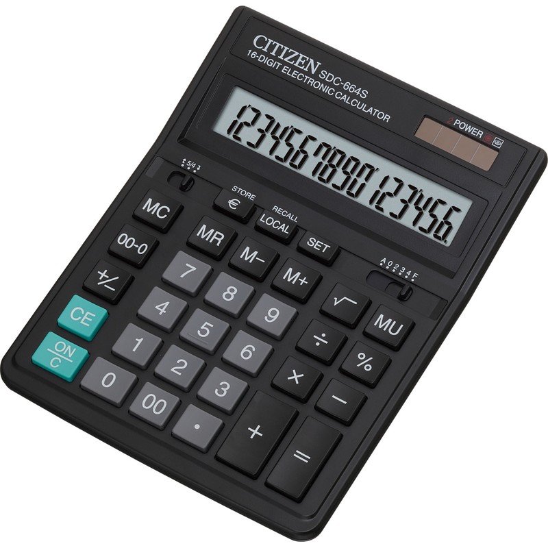 Калькулятор Citizen SDC-664S в пластиковом корпусе с 16-разрядным ЖК-дисплеем. Имеет оптимальный набор вычислительных функций: основные математические операции, расчет процентов, извлечение квадратного корня, запоминание промежуточных результатов. Удобная клавиатура снабжена кнопкой ввода двойного нуля. Питание калькулятора автоматически отключается после пяти минут бездействия.