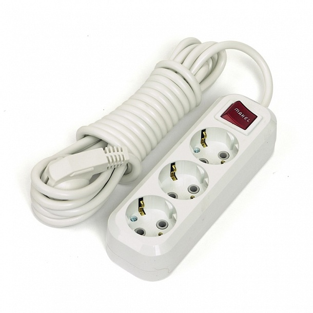 Удлинитель Makel оснащен универсальной электрической вилкой и тремя розетками, подходит к розеткам и приборам российского и европейского стандартов. Корпус удлинителя сетевого выполнен из безопасного пластика, устойчивого к возгоранию, ударопрочен. Удлинитель электрический имеет заземленный выключатель, максимальный ток для ограничителя — 10 Ампер, сечение внутреннего кабеля — 1 мм2. Длина провода — 5 м.