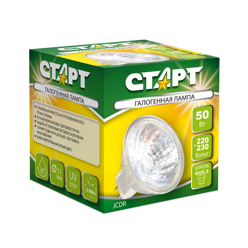 | 65526 Электрич.лампа СТАРТ JCDR 50W 220V GU5.3 галогенная в патроне |
