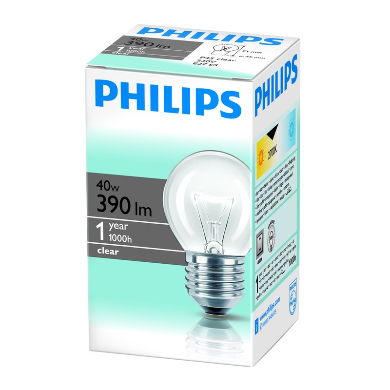 | 96642 Электрич.лампа Philips шарик/прозрачная 40W E27 CL/P45 (10/100) |