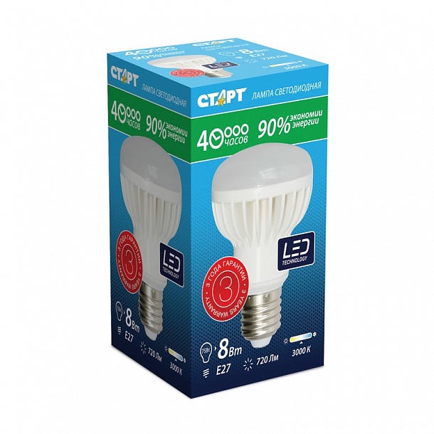 | Электрич.лампа светодиодная СТАРТ, мощн 8W, цоколь E27, рефлект., тепл. бел |