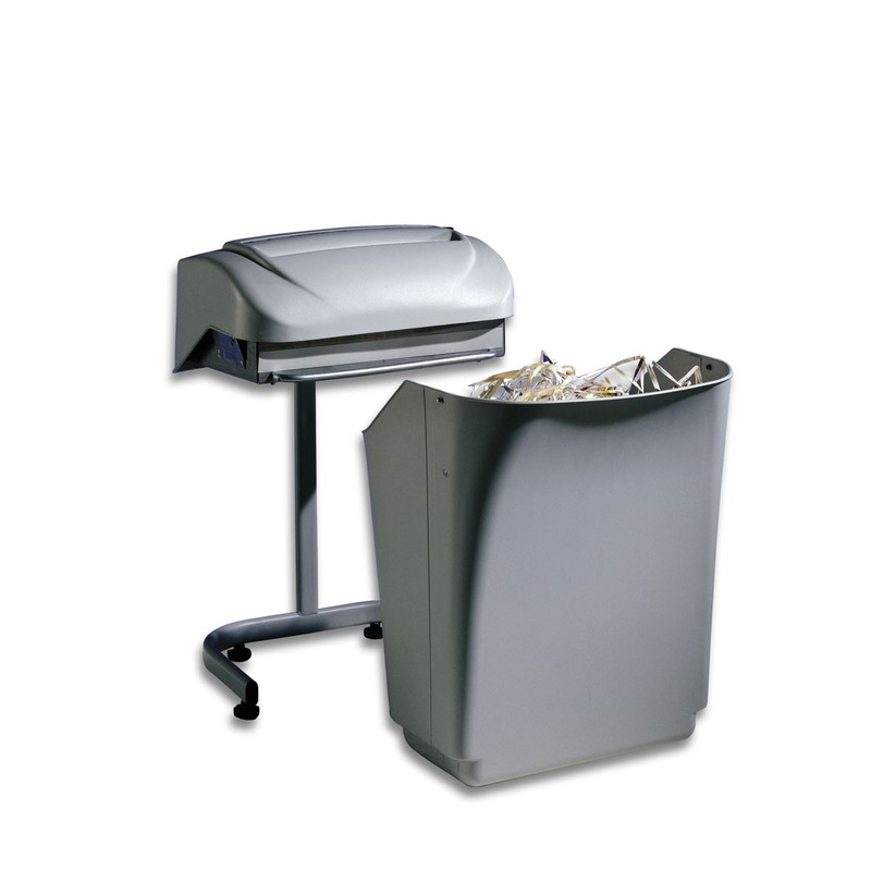 Уничтожитель документов от фирмы Kobra, выполнен в серых тонах. Уничтожитель документов, предназначенный для использования в среднем офисе при большом объеме работы. Оснащен мотором с защитой от перегрева и функцией остановки при попадании бумаги в механизм. Технология Turbo-Boost позволяет на некоторое время усилить мощность на 30%. Способен уничтожать как бумагу, так и диски, кредитные карточки, дискеты. Благодаря Energy Smart, находящийся в режиме ожидания уничтожитель не потребляет энергии.