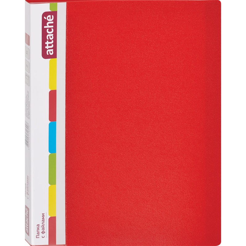 • Папка с файлами Attache предназначена для хранения материалов и документов формата А4, требующих упорядоченности и наглядного обзора: отчетов, презентаций, коммерческих и персональных портфолио. Изготовлена из пластика толщиной 0,7 мм красного цвета, имеет 30 прозрачных вкладышей, а также карман на корешке для сменной этикетки. Вмещает до 60 листов стандартной плотности. Преимуществом файловой папки является надежная сохранность документов в отличном состоянии без предварительной перфорации.