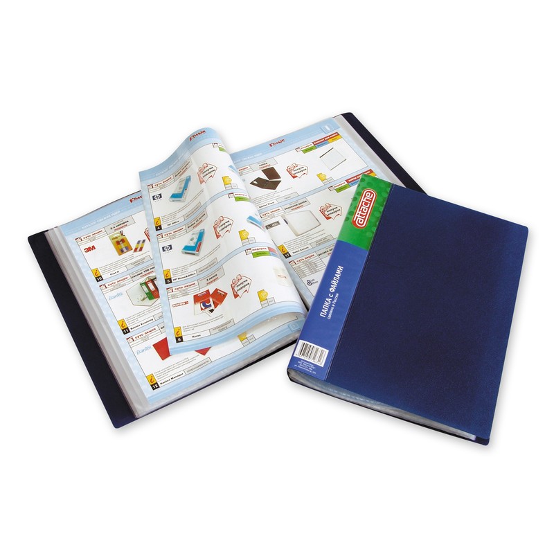 Папка с файлами Attache предназначена для хранения материалов и документов формата А4, требующих упорядоченности и наглядного обзора: отчетов, презентаций, коммерческих и персональных портфолио. Изготовлена из пластика толщиной 0,7 мм синего цвета, имеет 40 прозрачных вкладышей, а также карман на корешке для сменной этикетки. Вмещает до 80 листов стандартной плотности. Преимуществом файловой папки является надежная сохранность документов в отличном состоянии без предварительной перфорации.