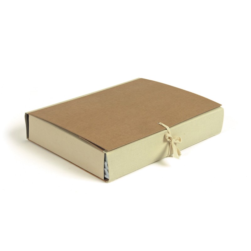 Архивная папка Attache формата А4 выполнена из плотного картона, обтянутого крафт-бумагой. Корешок шириной 5 см — из коленкора (переплетная хлопчатобумажная ткань). В закрытом виде фиксируется с помощью четырех завязок. Вмещает до 450 листов стандартной плотности.