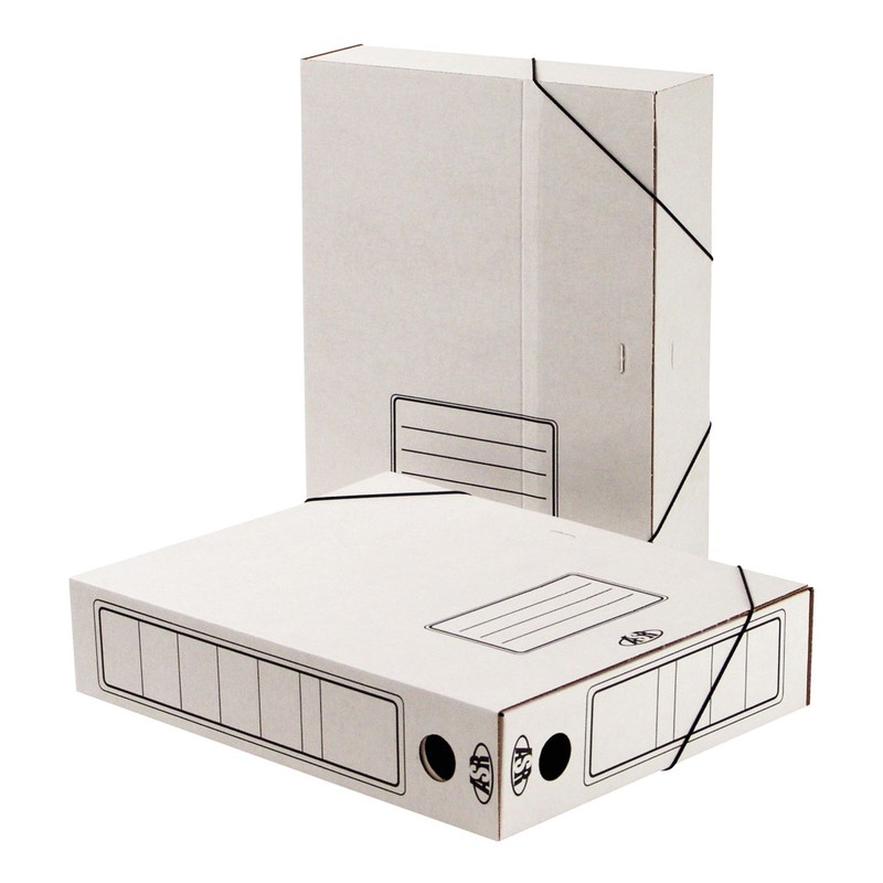 Внутренниестойки-упоры выполнены из гофрокартона. Короб вмещает до 500 листов стандартной плотности, ширина корешка — 75 мм. Позволяет надежно хранить документы как в вертикальном, так и в горизонтальном положении. -