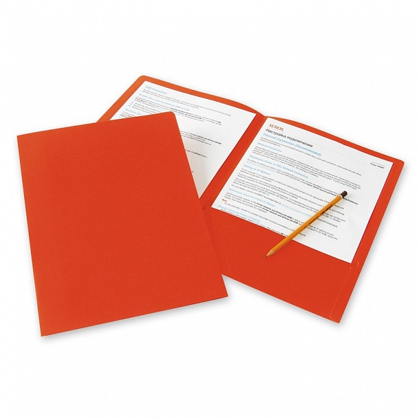 Папка Bantex формата А4+ изготовлена из прочного картона красного цвета. На обеих внутренних сторонах имеются карманы для вкладывания документов. Общая вместимость папки — около 60 листов стандартной плотности.