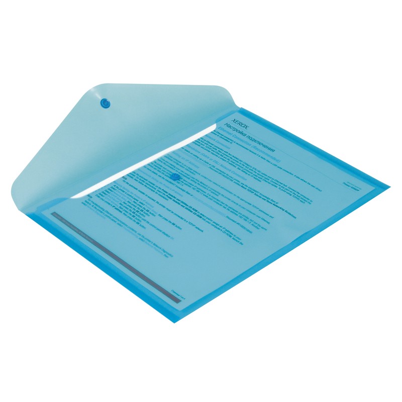 Папка-конверт Attache формата А4 изготовлена из прозрачного пластика толщиной 0,18 мм синего цвета. Закрывается на кнопку. Удобна для хранения и переноски документов, предотвращает их смятие и загрязнение. Вмещает до 120 листов стандартной плотности.