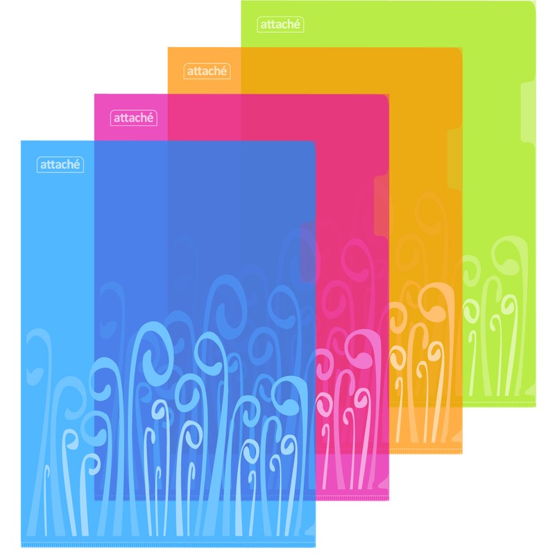 Папка-уголок Attache Fantasy формата А4 изготовлена из полупрозрачного пластика плотностью 180 мкм с абстрактным узором. Позволяет удобно хранить и переносить документы, предотвращает их смятие и загрязнение. Есть выемка для удобного извлечения листов. Папки поставляются упаковками по 8 штук разного цвета. Вместимость до 40 листов.