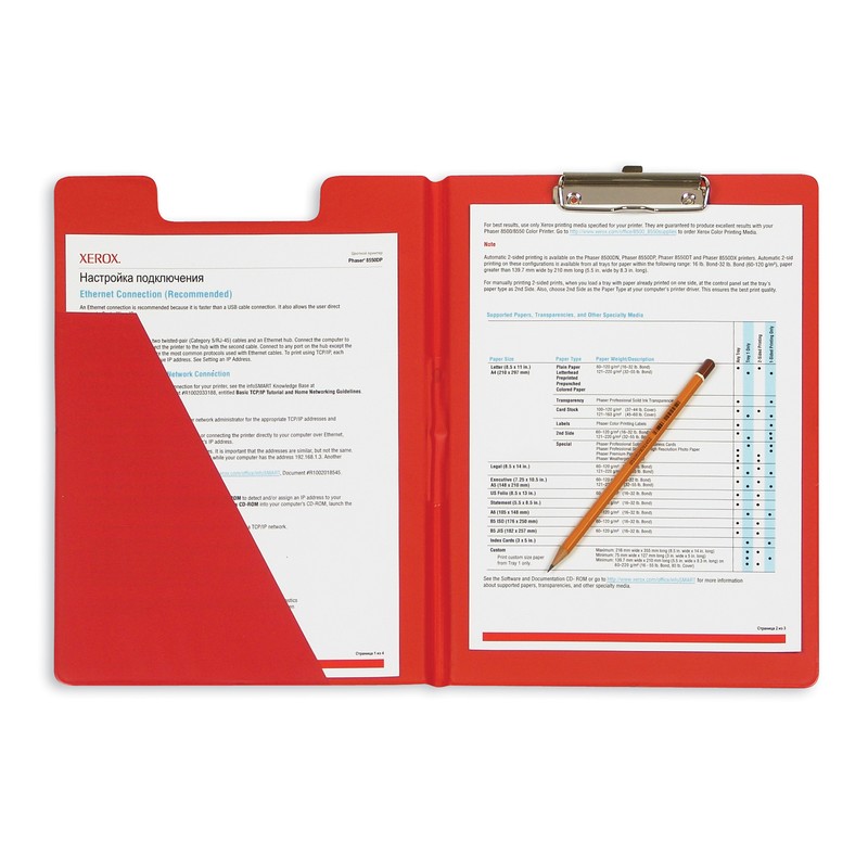Папка-планшет Bantex формата А4 с откидной крышкой изготовлена из плотного картона, обтянут ПВХ красного цвета. Позволяет комфортно работать с документами на весу. Металлический прижим надежно удерживает листы.