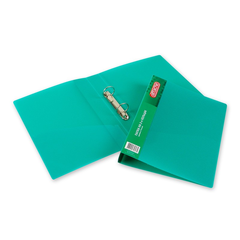 Папка на двух кольцах Attache изготовлена из пластика толщиной 0,7 мм зеленого цвета. Формат А4. Снабжена механизмом на двух O-кольцах. Диаметр кольца — 35 мм. На внутренней стороне обложки есть прозрачный карман для документов. Корешок шириной 42 мм имеет карман для сменной этикетки. Папка на кольцах вмещает до 250 листов стандартной плотности.