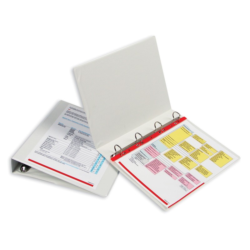 Папка на четырех кольцах Bantex «Панорама» удобна для проведения презентаций, представления документации на семинарах. Формат А4. Изготовлена из плотного картона, с внешней и внутренней стороны покрыта пластиком белого цвета. Оснащена механизмом на четырех D-кольцах диаметром 35 мм. Корешок шириной 40 мм имеет прозрачный карман для сменной этикетки. На лицевой и оборотной сторонах папки для презентаций расположены карманы А4 для размещения титульного листа и прочей информации. На внутренней стороне обложки — карман для документов. Презентационная папка на кольцах вмещает до 250 листов стандартной плотности.