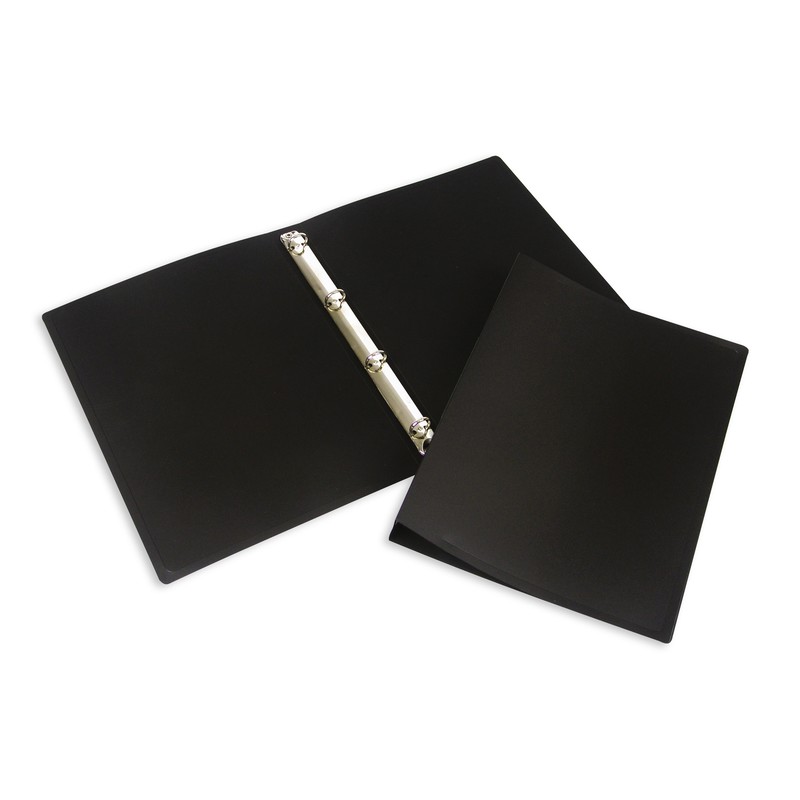 Папка на четырех кольцах Attache изготовлена из пластика толщиной 0,45 мм черного цвета. Формат А4. Снабжена механизмом на четырех O-кольцах. Диаметр кольца — 25 мм. На корешке шириной 32 мм есть наклейка для маркировки. Папка на кольцах вмещает до 250 листов стандартной плотности.
