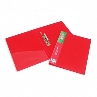 Папка Attache формата А4 изготовлена из пластика красного цвета, толщина материала — 0,7 мм. Оснащена металлическим механизмом с прижимом, который позволяет подшивать документы без предварительной перфорации. Ширина корешка — 17 мм. На внутренней стороне обложки есть прозрачный карман для документов, компакт-дисков, визиток. Папка вмещает до 150 листов стандартной плотности.