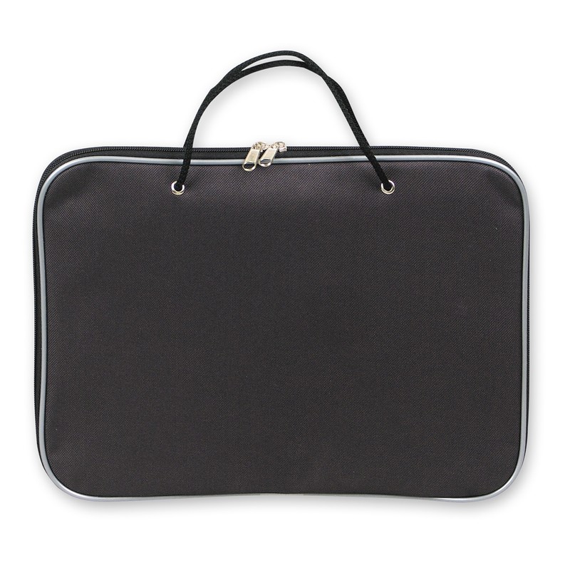 Папка-портфель Attache на молнии с двумя ручками-шнурами. Материал — прочный нейлон. Размер — 340×260×20 мм. Цвет черный.