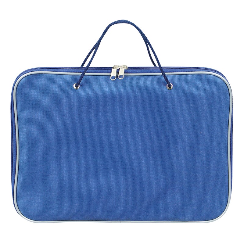 Папка-портфель Attache на молнии с двумя ручками-шнурами. Материал — прочный нейлон. Размер — 340×260×20 мм. Цвет синий.