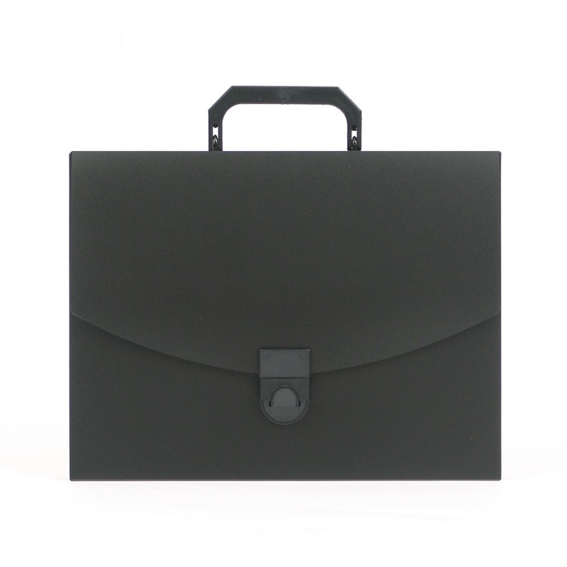 Папка-портфель Attache для удобной переноски документов изготовлена из прочного пластика черного цвета. Ширина — 40 мм. Размеры — 250×370 мм, формат А4. Закрывается с помощью застежки-замка, есть ручка.
