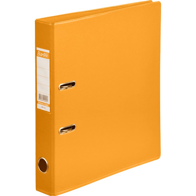 Папка-регистратор с арочным механизмом Bantex изготовлена из плотного картона, с внешней и внутренней стороны обтянута ПВХ оранжевого цвета. По нижнему краю окантована дополнительным слоем ПВХ-пленки по технологии Strong Line, предотвращающей царапины на мебели. Формат А4. Арочный механизм выполнен из особо прочной стали. Специальные прорези на крышке удерживают папку закрытой даже при большом количестве документов. На корешке шириной 50 мм есть пластиковый карман со сменной двусторонней этикеткой и кольцо для удобства захвата. Папка-регистратор Bantex вмещает до 350 листов стандартной плотности.