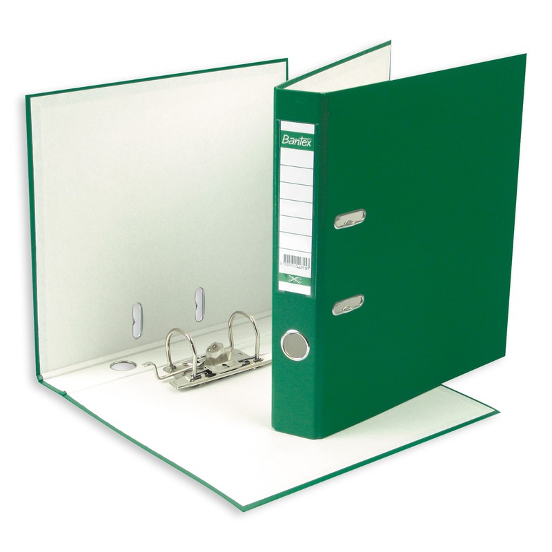 Папка-регистратор с арочным механизмом Bantex Economy изготовлена из плотного картона, с внешней стороны обтянута бумвинилом зеленого цвета. Внутренняя поверхность — бумажная. Формат А4. Прорези на внешней крышке папки удерживают ее закрытой даже при большом количестве документов. На корешке шириной 50 мм есть пластиковый карман со сменной двусторонней этикеткой и кольцо для удобства захвата. Папка-регистратор Bantex Economy вмещает до 350 листов стандартной плотности.