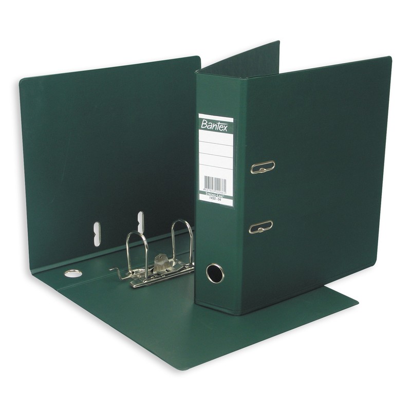 Папка-регистратор с арочным механизмом Bantex изготовлена из плотного картона, с внешней и внутренней стороны обтянута ПВХ темно-зеленого цвета. По нижнему краю окантована дополнительным слоем ПВХ-пленки по технологии Strong Line, предотвращающей царапины на мебели. Формат А4. Арочный механизм выполнен из особо прочной стали. Специальные прорези на крышке удерживают папку закрытой даже при большом количестве документов. На корешке шириной 70 мм есть пластиковый карман со сменной двусторонней этикеткой и кольцо для удобства захвата. Папка-регистратор Bantex вмещает до 450 листов стандартной плотности.