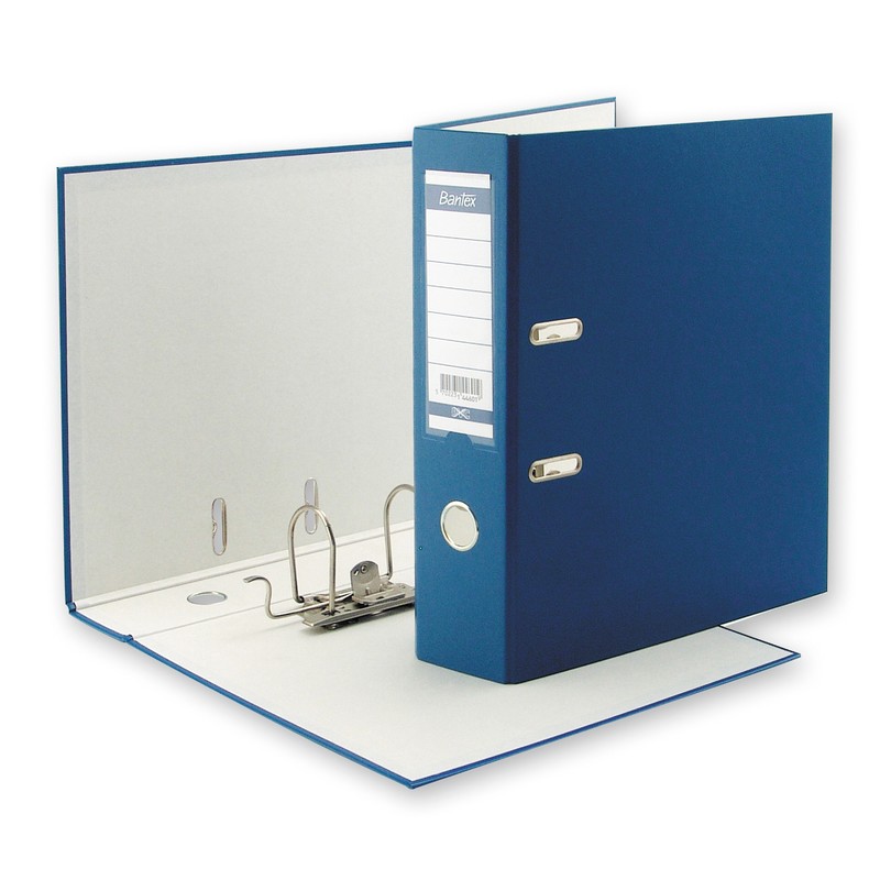 Папка-регистратор с арочным механизмом Bantex Economy изготовлена из плотного картона, с внешней стороны обтянута бумвинилом синего цвета. Внутренняя поверхность — бумажная. Формат А4. Прорези на внешней крышке папки удерживают ее закрытой даже при большом количестве документов. На корешке шириной 70 мм есть пластиковый карман со сменной двусторонней этикеткой и кольцо для удобства захвата. Папка-регистратор Bantex Economy вмещает до 450 листов стандартной плотности.