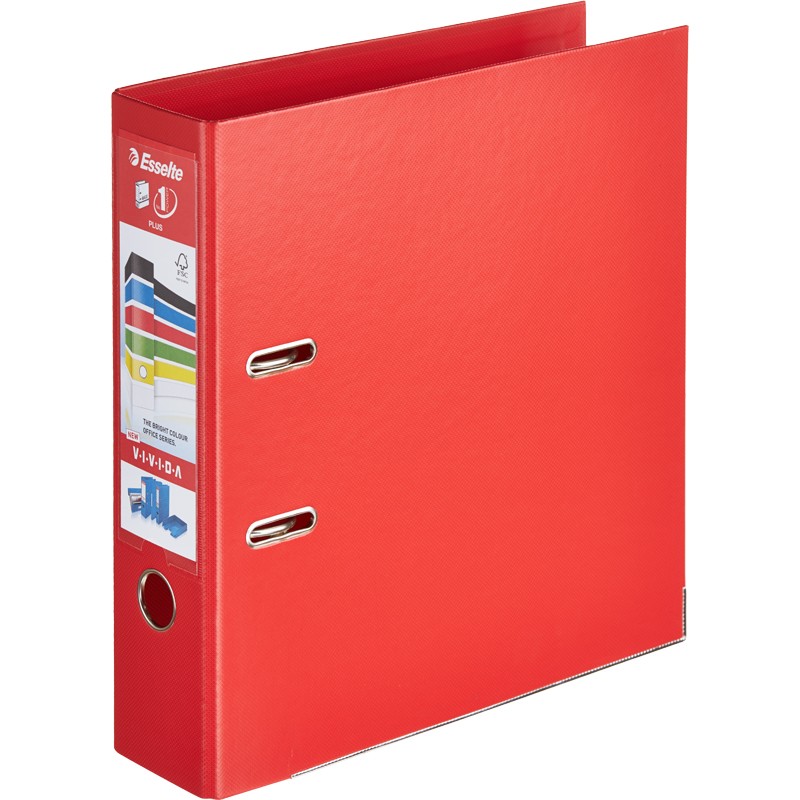 Папка-регистратор с арочным механизмом Esselte Стандарт Плюс изготовлена из жесткого картона, обтянутого с обеих сторон полипропиленовой пленкой красного цвета. Ширина корешка составляет 80 мм, ширина папки на 15 мм превышает стандартную, что позволяет архивировать документы формата больше А4. На корешке есть пластиковый карман для этикетки. Папка-регистратор Esselte вмещает до 600 листов стандартной плотности.