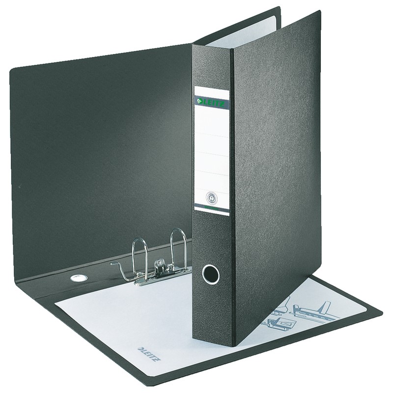 Папка-регистратор с арочным механизмом Leitz изготовлена из плотного «мраморного» картона черного цвета. Вертикальная, формат А3. Надежный и долговечный арочный механизм открывается на 180 градусов. На корешке шириной 75 мм есть кольцо для удобного захвата и наклеенная маркировочная этикетка. Папка-регистратор формата А3 вмещает до 480 листов стандартной плотности.