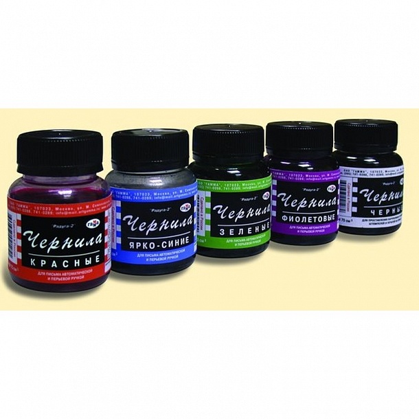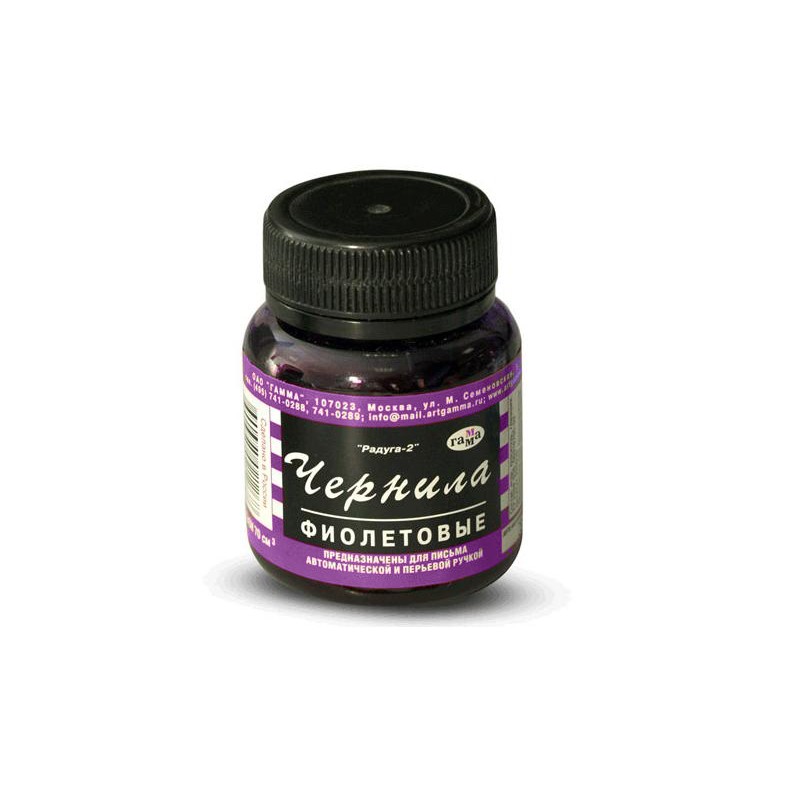 Чернила «Гамма Радуга» фиолетового цвета предназначены для дозаправки всех типов перьевых и автоматических ручек. Жидкость обладает оптимальной консистенцией, которая не растекается при письме, содержит в составе краситель, воду и глицерин. Чернила поставляются в пластиковом флаконе объемом 70 миллилитров.