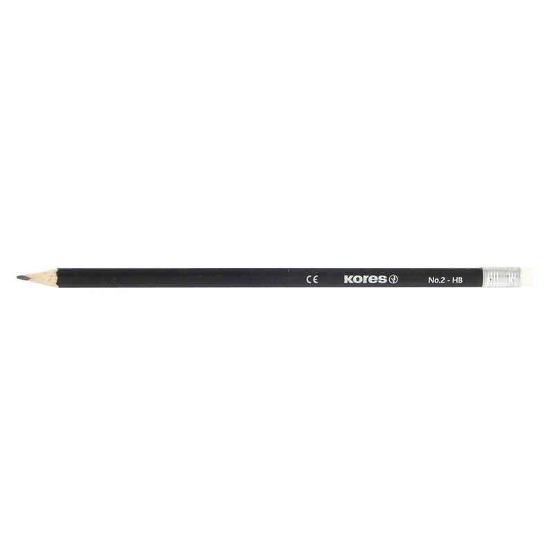 Карандаш чернографитный Kores в черном трехгранном деревянном корпусе. Простые карандаши с ластиком поставляются заточенными. Твердость грифеля — HB. Высококачественный и прочный, грифель не сломается даже при падении и ударе. Длина карандаша — 185 мм.