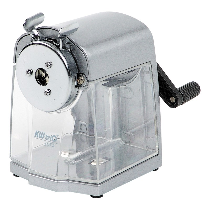 KW-trio . Для чернографитных и цветных карандашей диаметром от 7 до 12 мм. Подходит для круглых, трехгранных, шестигранных карандашей. Точилка может крепиться к поверхности стола. Запасные ножи отсутствуют, комплектные служат 5 лет. -