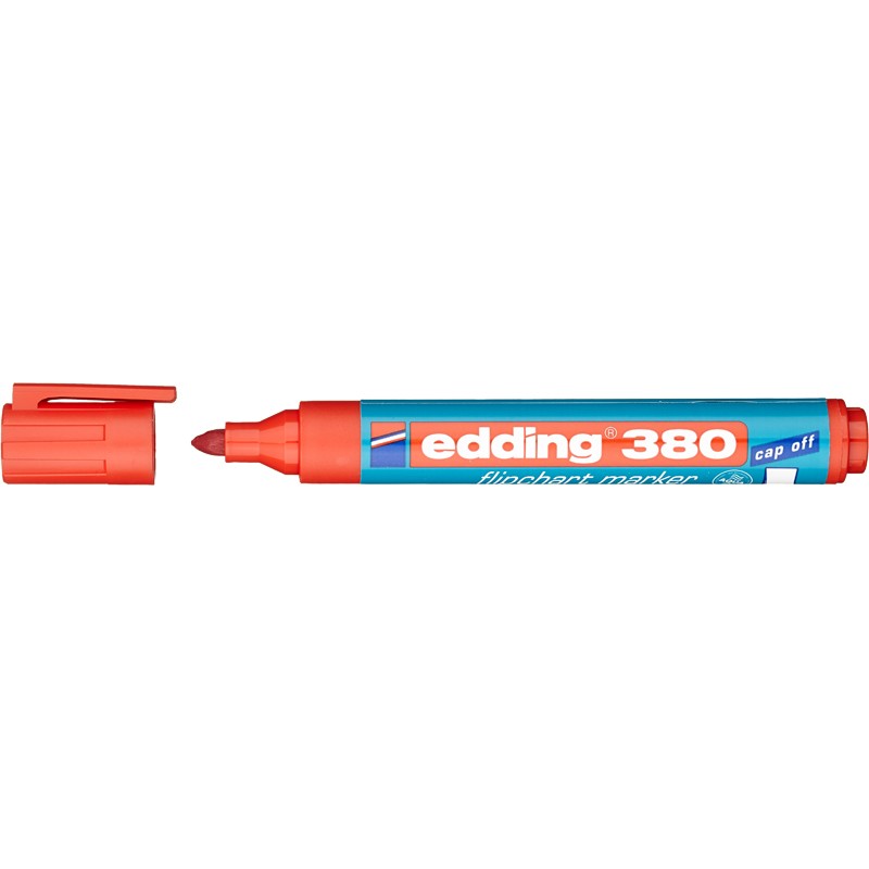 Маркер для флипчартов Edding E-380/2 с технологией "cap off" Круглый наконечник. Пластиковый корпус. Толщина линии письма: 2.2мм Цвет: красный. Производство - Германия.