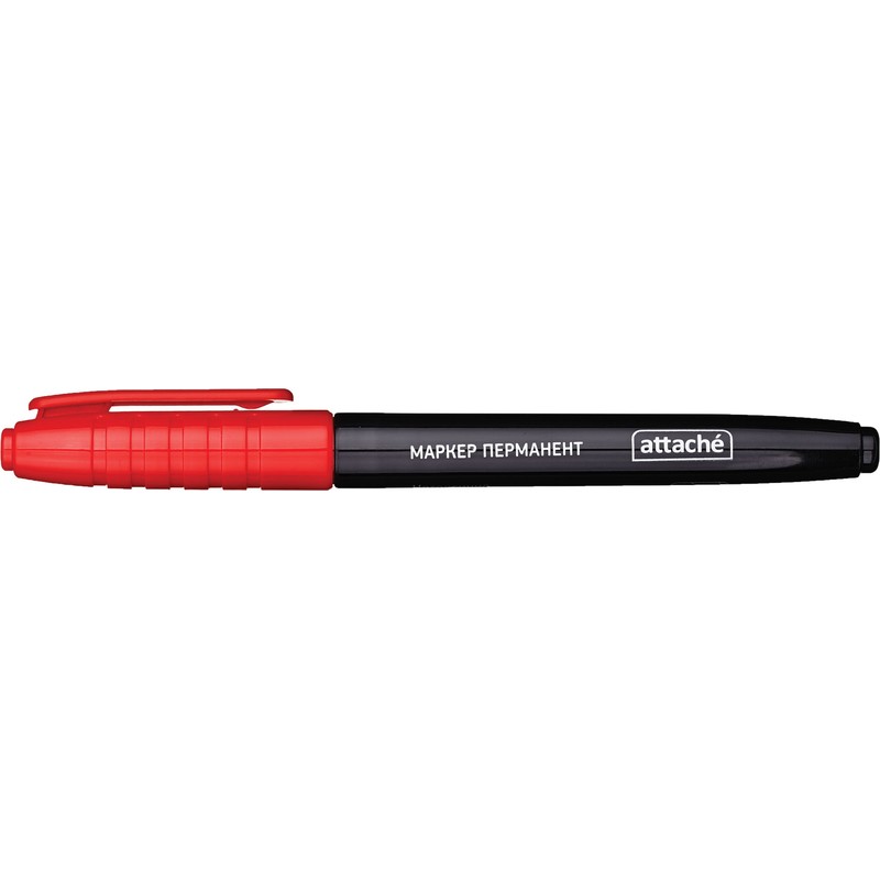 Перманентный маркер Attache в корпусе из прочного пластика. Нестираемые чернила пишут на любой поверхности. Круглый наконечник позволяет провести линию толщиной от 1,5 до 3 мм. Цвет — красный.