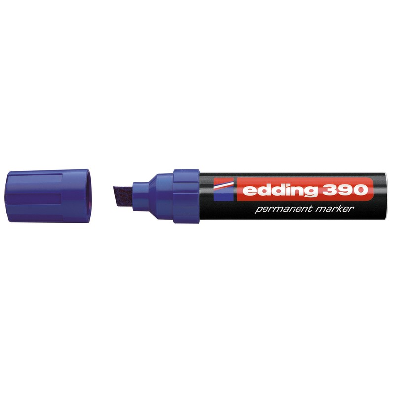 Перманентный маркер Edding E-390/3 в пластиковом корпусе. Нестираемые чернила на спиртовой основе. Клиновидный наконечник обеспечивает толщину линии от 4 до 12 мм. Страна производства — Германия. Цвет — синий.