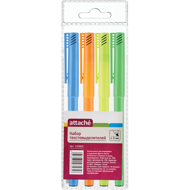 | Маркер выделитель текста ATTACHE набор 4цв. 1-3мм. |