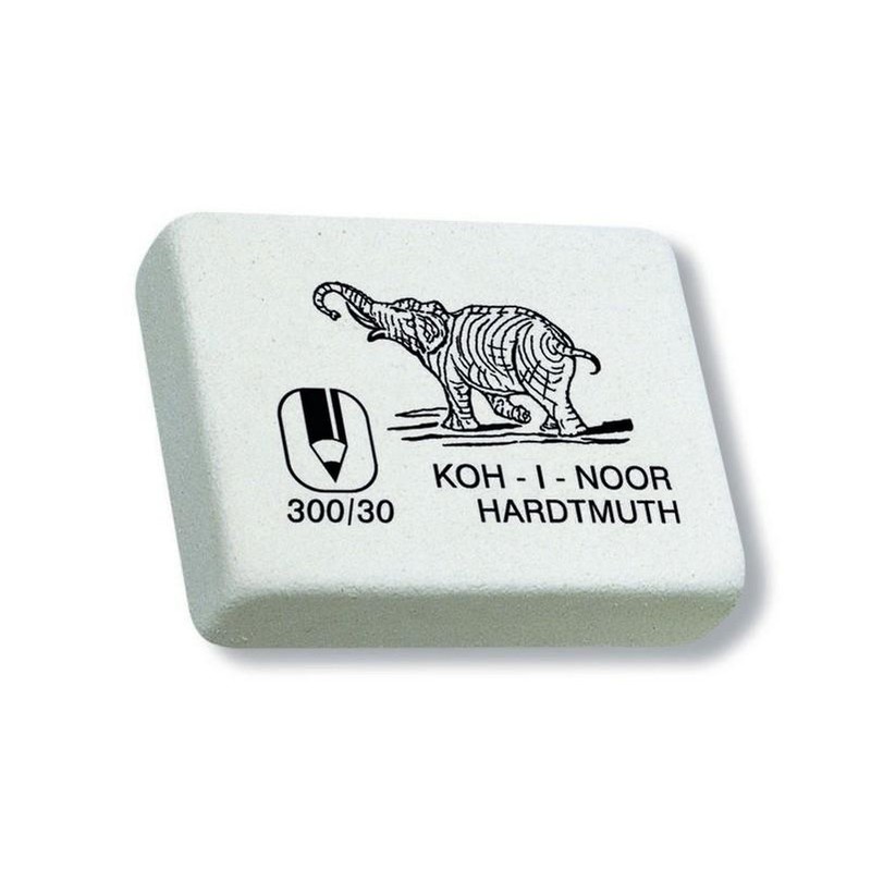 Ластик Koh-i-noor 300/30 для удаления графитовых карандашей 3B - 3H. Ластик каучуковый, белого цвета. Размер 35,5 х 28,5 х 10 мм
