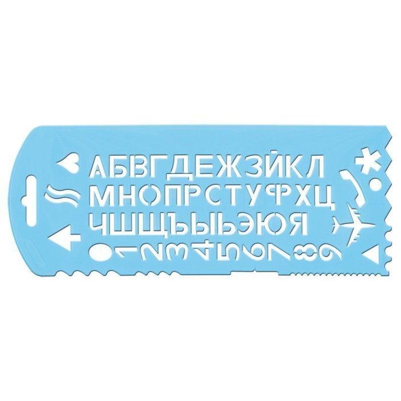 Размер трафарета 86×220×1,9 мм. Высота букв (кроме Щ Ц Д) и цифр в трафарете 12 мм.
