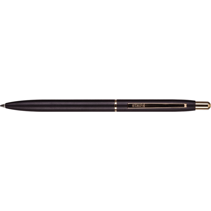 Автоматическая шариковая ручка Attache 4007BL с механизмом нажимного действия имеет латунный корпус черного цвета. Декоративные элементы выполнены с использованием позолоты. Толщина линии письма — 0,7 мм. Комплектуется стержнем с пастой синего цвета.