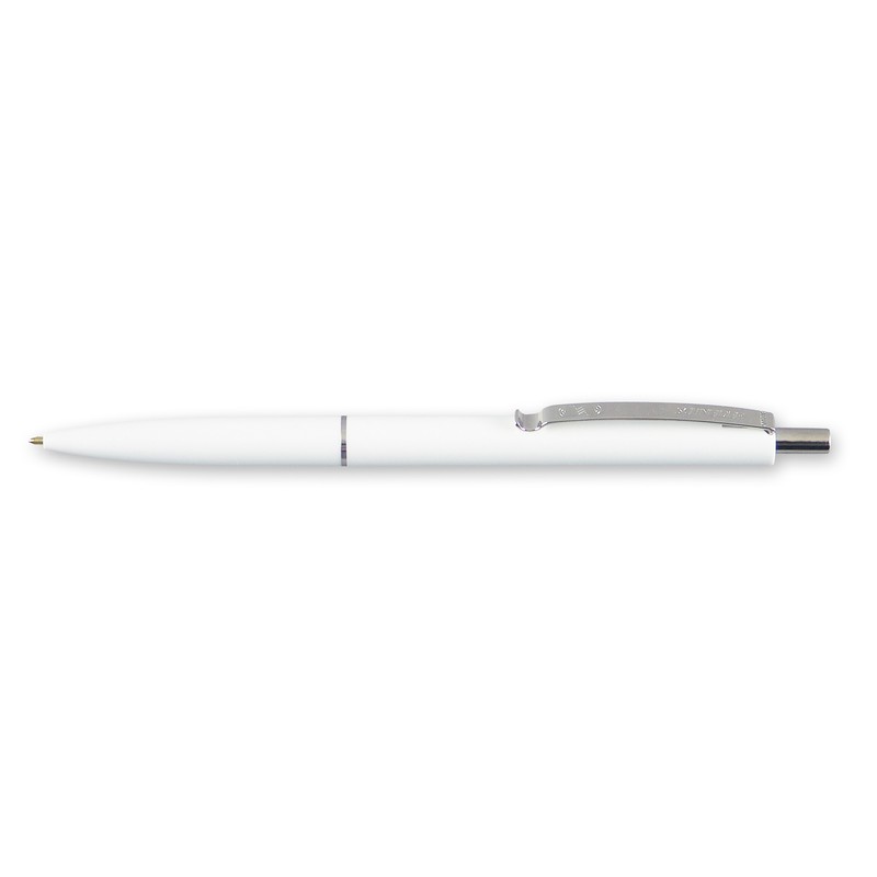 Шариковая ручка Schneider K15 имеет пластиковый корпус белого цвета, кнопка механизма подачи стержня — металлическая. Толщина линии письма составляет 0,5 мм. Комплектуется стержнем с пастой синего цвета.