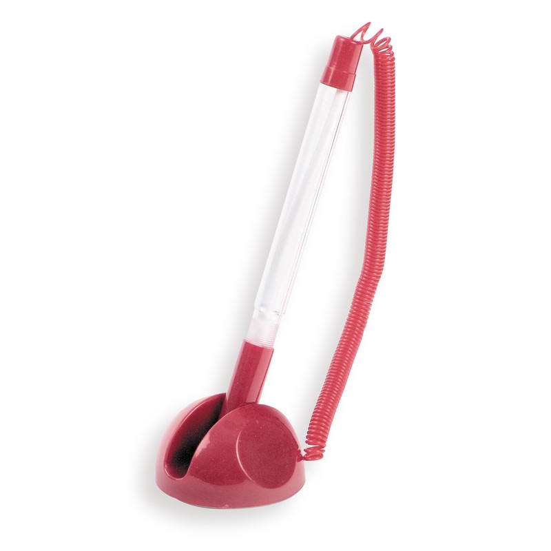 Многоразовая шариковая ручка с синим цветом чернил. Модель в прозрачном корпусе с деталями красного цвета специально разработана для офисов и различных учреждений: с одной стороны она крепится к пластиковой пружине, а с другой — к специальной подставке с липким основанием для установки на столах или тумбах. Ручка комплектуется сменным стержнем, толщина линии составляет 0,5 мм. Дополнительные стержни для ручки вы сможете найти во вкладке «Расходные материалы».