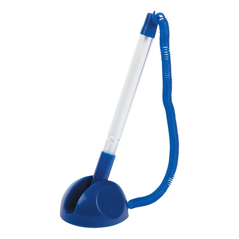 Многоразовая шариковая ручка с синим цветом чернил. Модель в прозрачном корпусе с деталями синего цвета специально разработана для офисов и различных учреждений: с одной стороны она крепится к пластиковой пружине, а с другой — к специальной подставке с липким основанием для установки на столах или тумбах. Ручка комплектуется сменным стержнем, толщина линии составляет 0,5 мм. Дополнительные стержни для ручки вы сможете найти во вкладке «Расходные материалы».